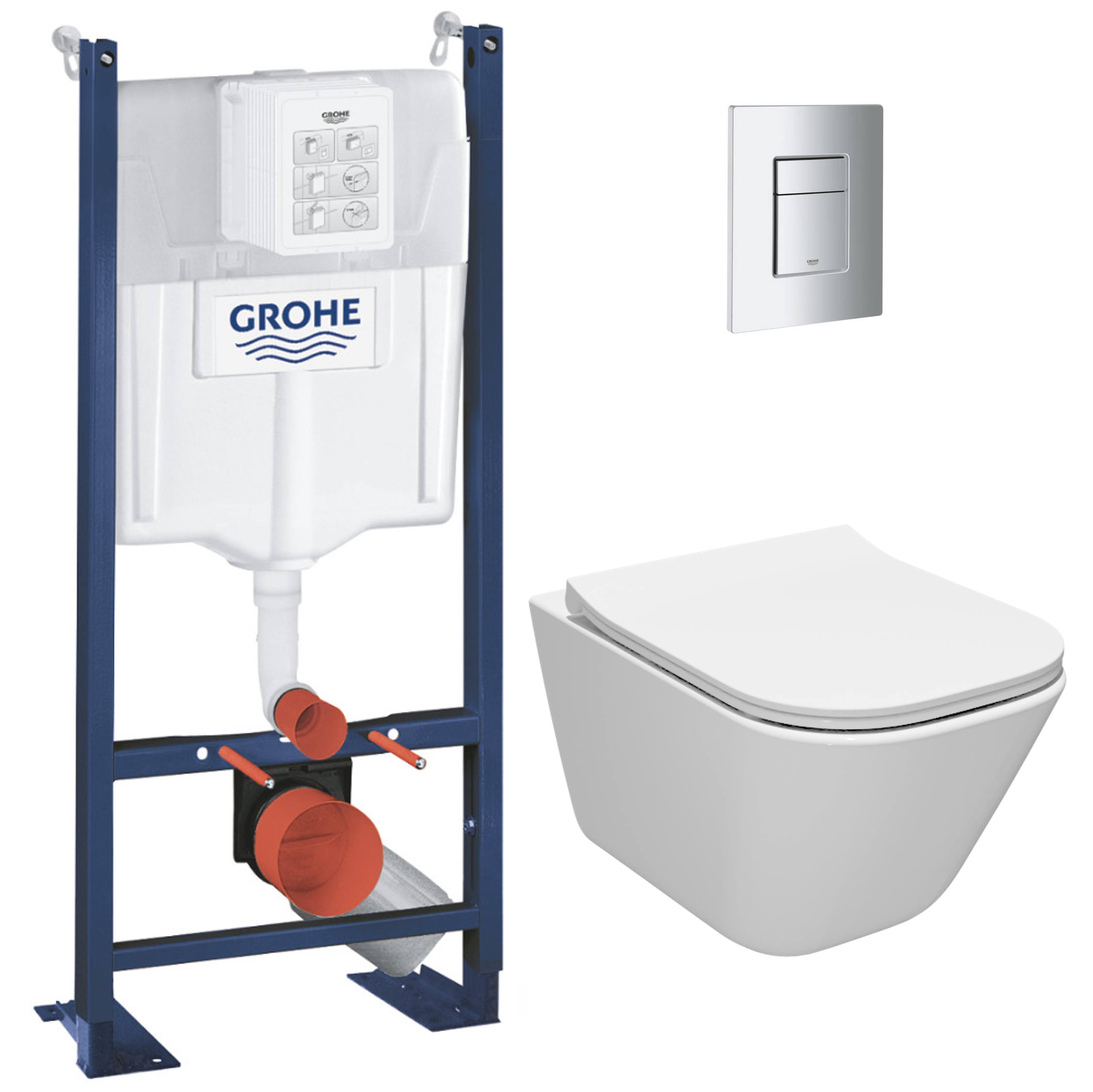 Grohe RAPID SL Pack Bâti-support + WC sans bride Roca Gap + Abattant slim, SoftClose + Plaque chrome (PROJECTGAP-1)