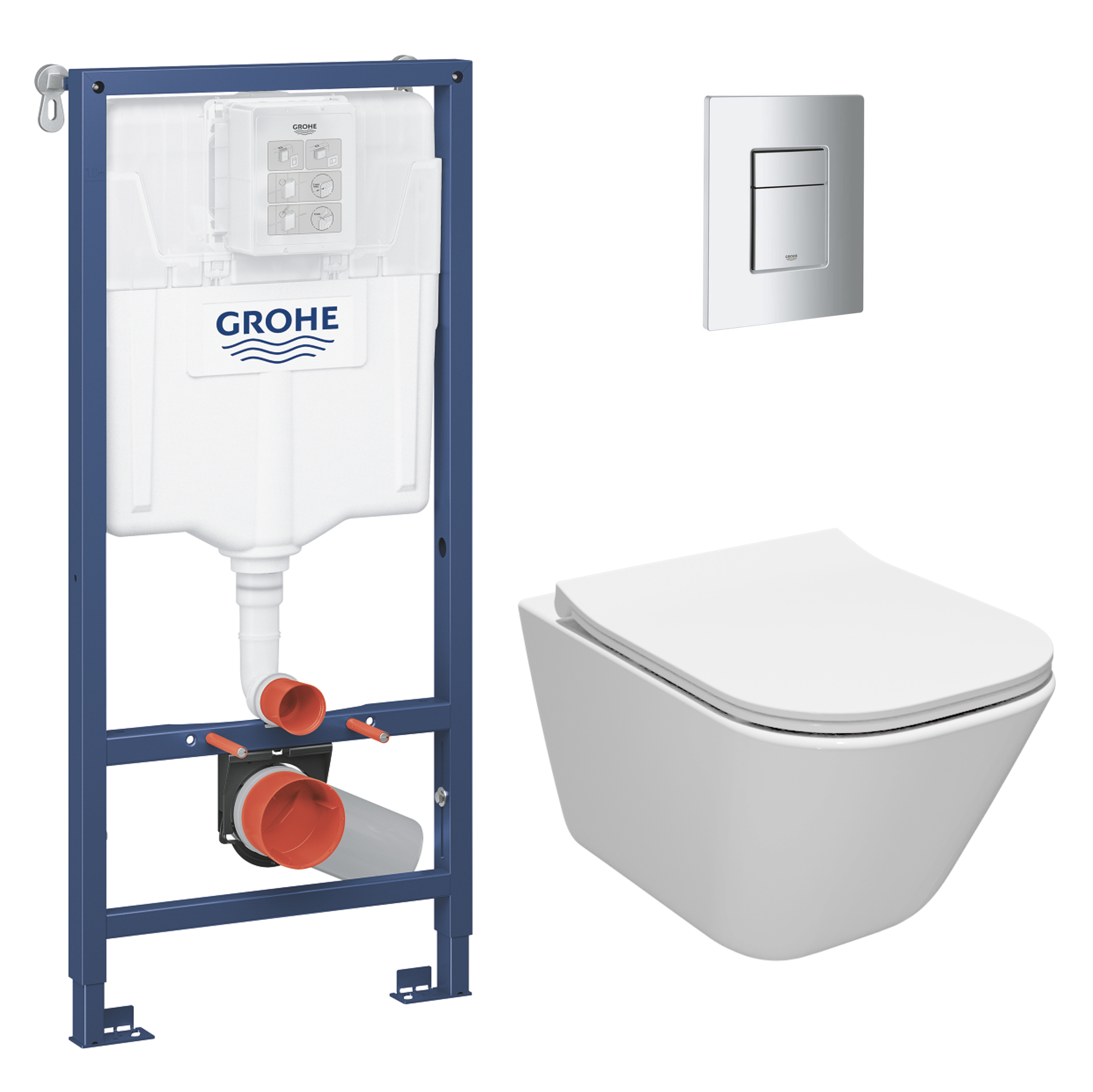 Grohe Rapid SL Pack Bâti-support + WC sans bride Roca Gap + Abattant slim, SoftClose + Plaque chrome (RAPIDSL-GAP-1)