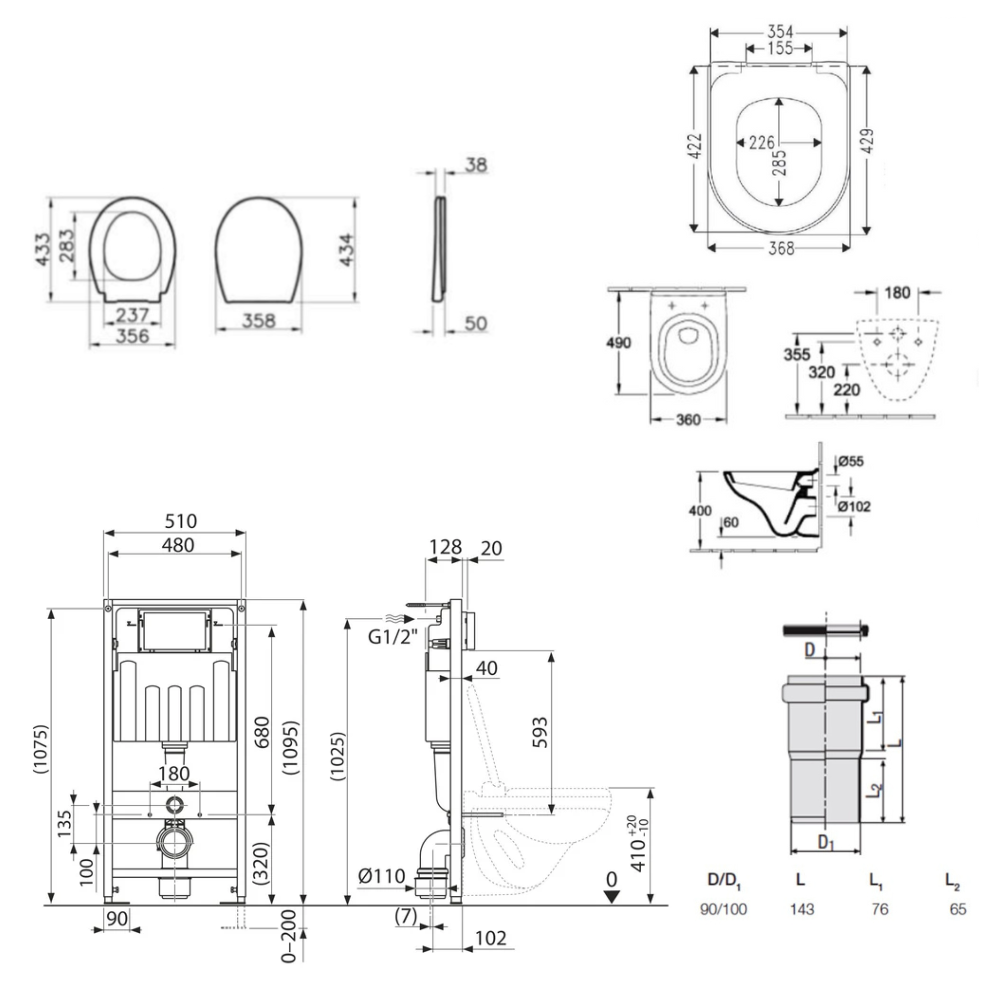 Caractéristiques du ViConnect Pack Bâti-support Villeroy & Boch + Cuvette suspendue Villeroy & Boch + Abattant + Plaque blanche (VICONNECTO.NOVO49-2) :