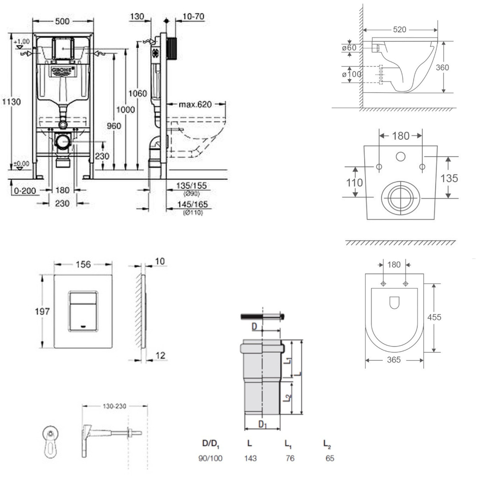 Grohe Rapid SL Pack Bâti-support + WC suspendu + Plaque chrome + Set de montage (RAPIDSL-FUSIONTQ-1-SABO)