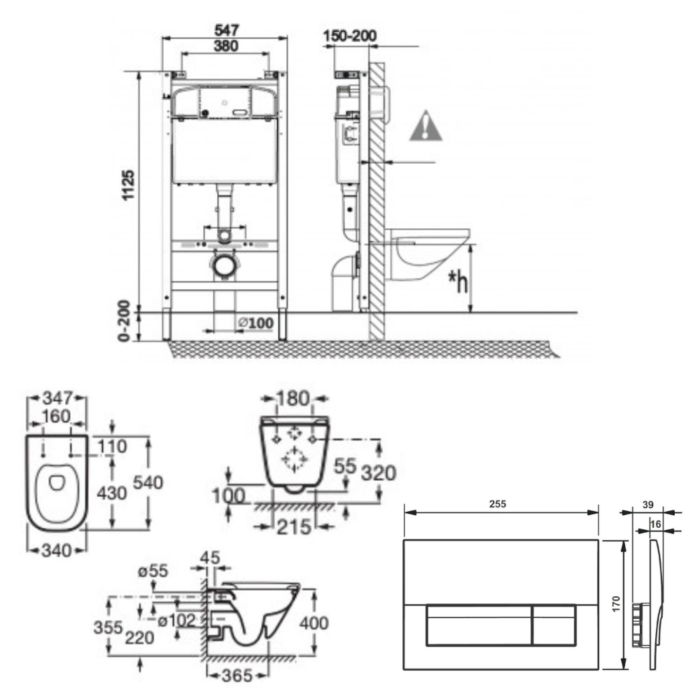 Caractéristiques du Pack WC Bâti-support Roca Active + Cuvette sans bride + Abattant slim SoftClose + Plaque blanche (ROCAACTIVEGAP-3) :