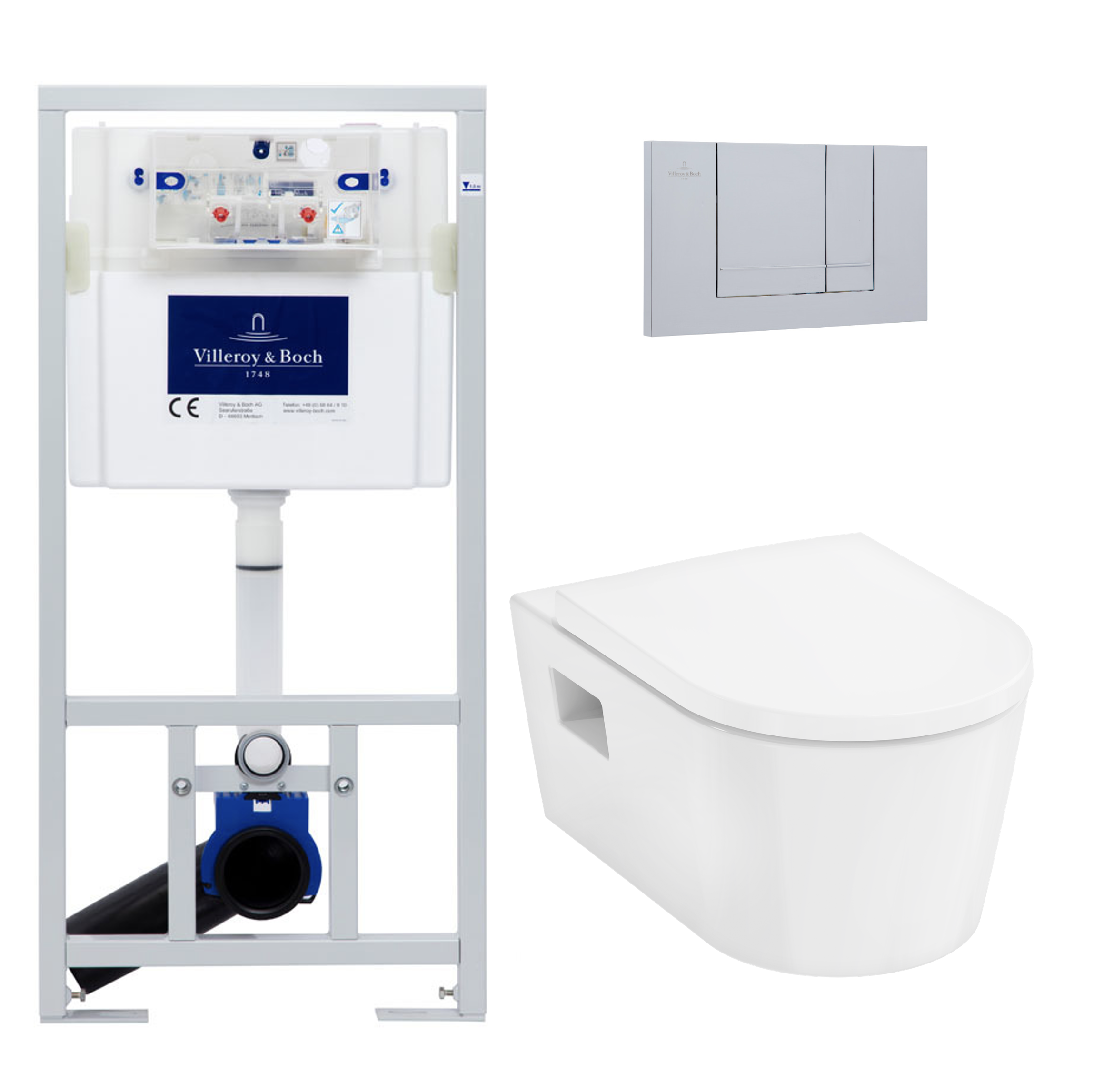 - Villeroy & Boch Viconnect Pro Pack Bâti support pour WC suspendu + Plaque de déclenchement double touche Chrome mat (92214469)