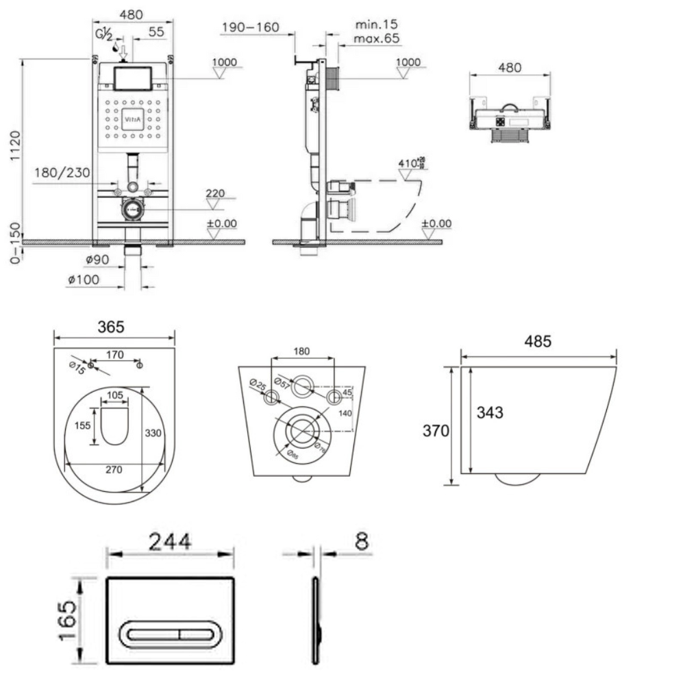 Caractéristiques du Pack WC Bâti-support autoportant V-Fix Core + WC SAT sans bride et fixations invisibles + Plaque chrome mat (VFTFINFI5) :