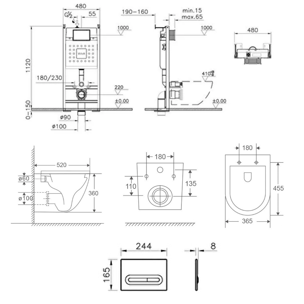 Vitra Pack WC Bâti autoportant V-Fix Core + WC SAT sans bride + Abattant SoftClose + Plaque noire mat (VFTFFUSIONTQ6)