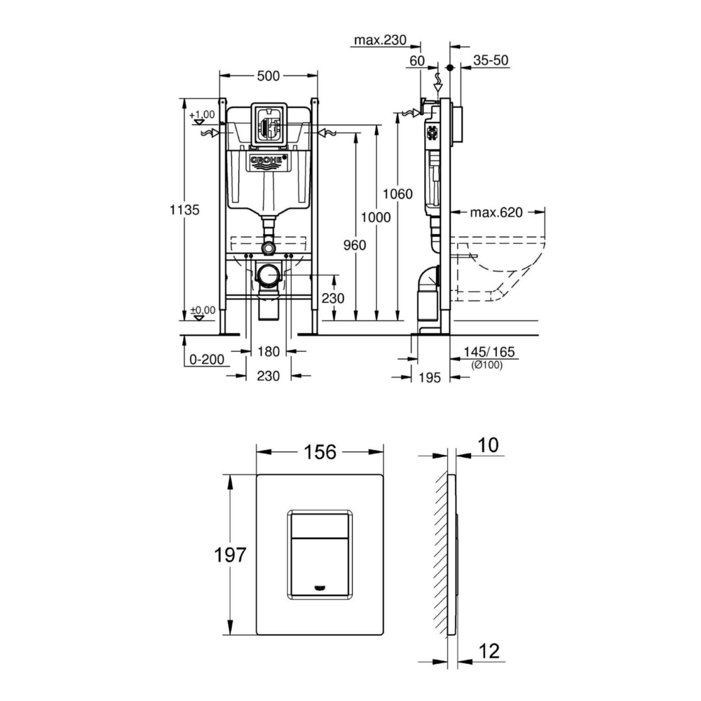 - Grohe RAPID SL Project bâti support autoportant pour WC, 1.13 M (39145000)