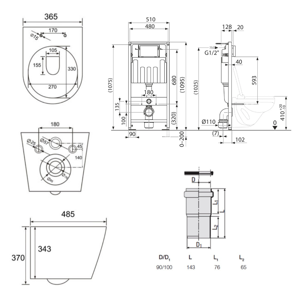 - Plage de réglage devant mur : 135-205mm (lorsque monté sur des supports muraux)
