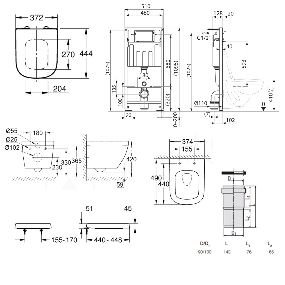 - Compatible avec toutes les cuvettes WC Euro Ceramic