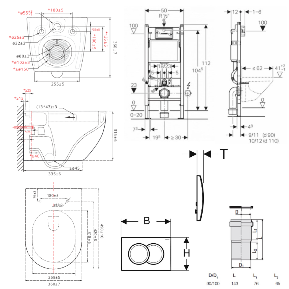 Ces bâti-supports pour WC suspendus ne peuvent être installés contre des cloisons en plaques de plâtre à âme alvéolaire en carton, contre des cloisons en plaques de plâtre sur ossature métallique ou contre des cloisons de séparation double peau en plaques de plâtre sur ossature métallique sans accessoirisation additionnelle (substitution des pieds fournis par des pieds autoportants) ou l'ajout de renforts complémentaires (à intégrer au préalable dans la cloison au niveau des fixations hautes).