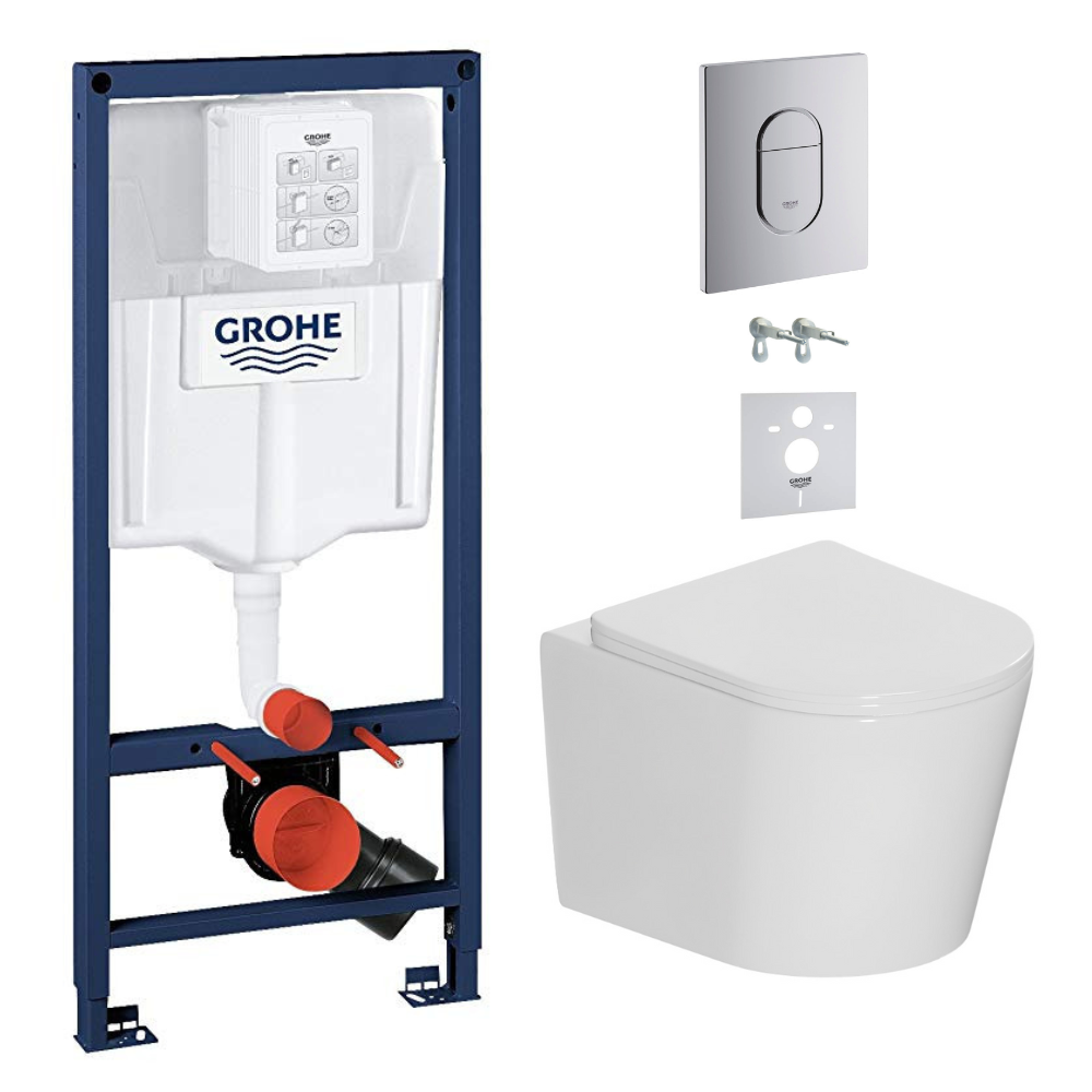Grohe Pack WC bâti-support Rapid SL + WC suspendu sans bride + abattant SoftClose + isolation phonique + plaque chrome (ARENACETOR)