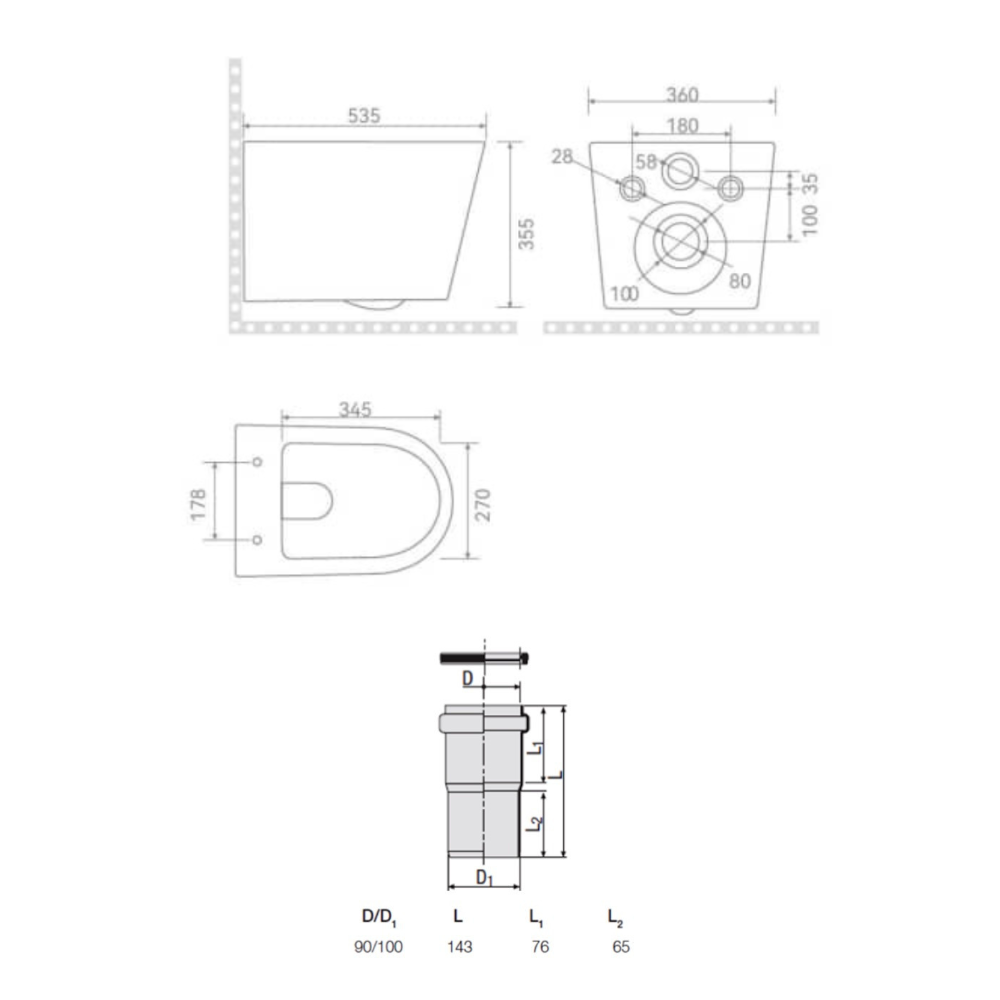 - Type de produit : ensemble WC suspendu sans bride + abattant SoftClose