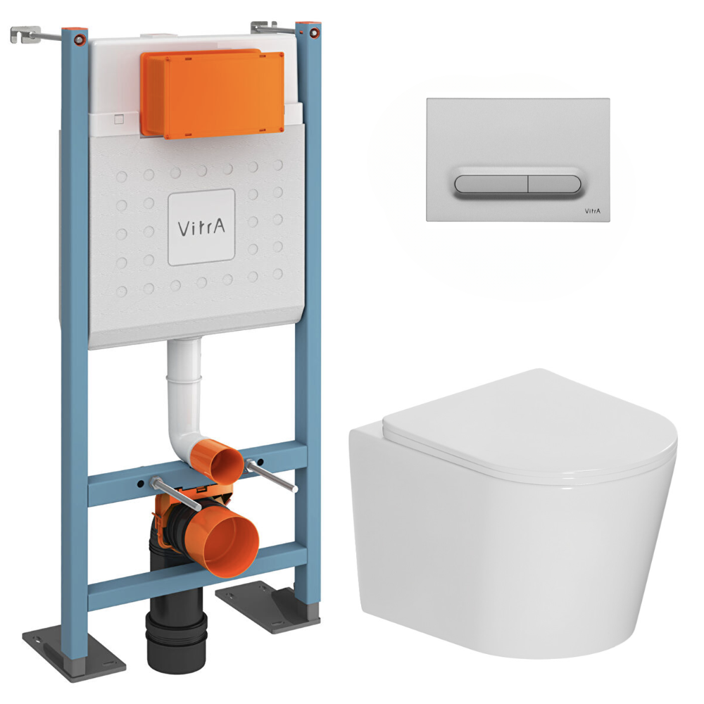 Vitra Pack WC bâti-support autoportant V-Fix Core + WC suspendu sans bride + abattant SoftClose + plaque chrome mat (VFTFCETOR5)