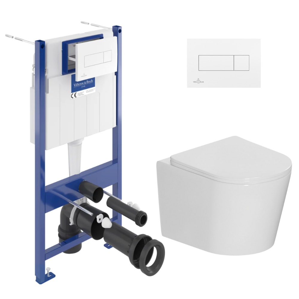 Pack WC bâti-support sol-mur Villeroy & Boch + WC suspendu sans bride Ceramia + abattant SoftClose + plaque blanche (VCNCETOR2)
