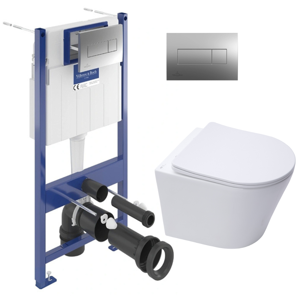 ViConnect Pro S Pack WC bâti Villeroy & Boch + WC sans bride Swiss Aqua Technologies + abattant + plaque (VCNINFI2CHDE)