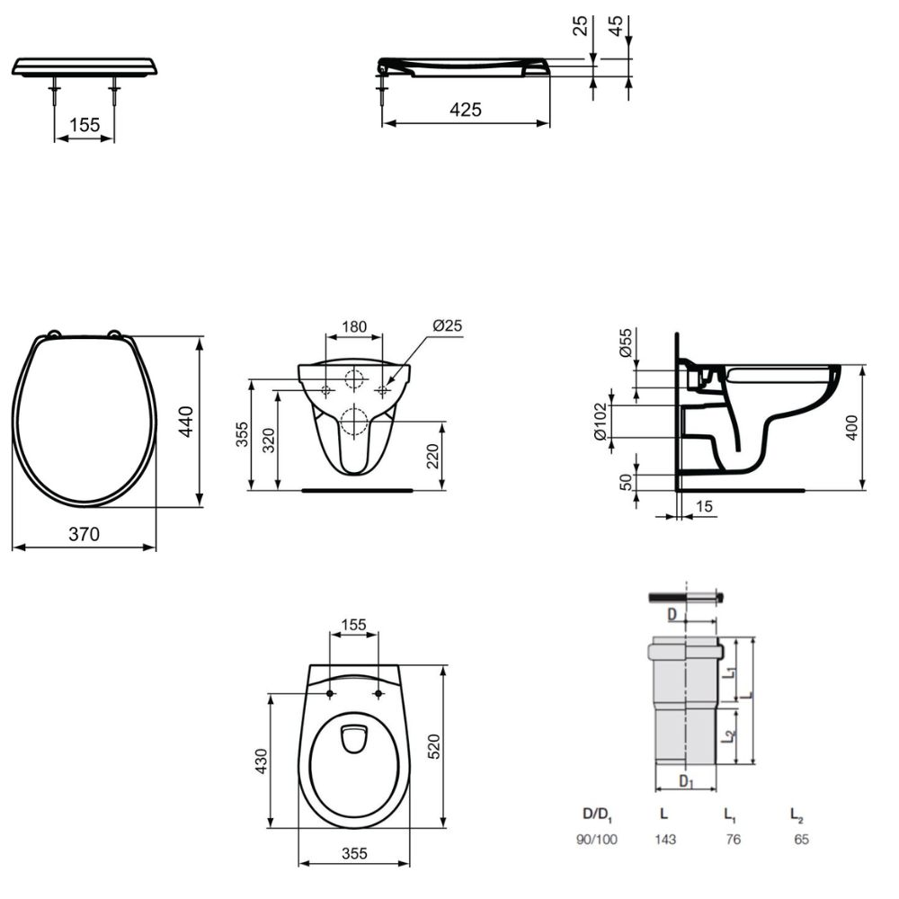 - Convient pour tous les raccordements de WC courants