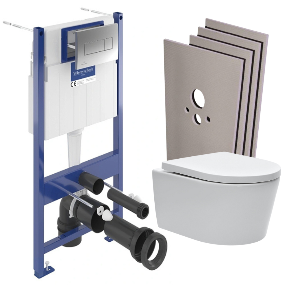 Pack WC bâti Villeroy & Boch + WC Swiss Aqua Technologies + abattant SoftClose + habillage + plaque (VICOSATRIM2SACHAMZ)