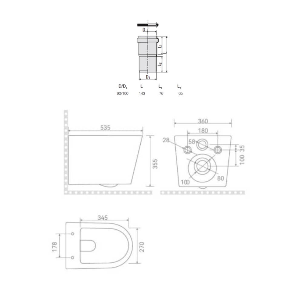 - Redi Manchon de raccordement Ø 90/100 MM pour Rapid SL ou Geberit (VS0564190)