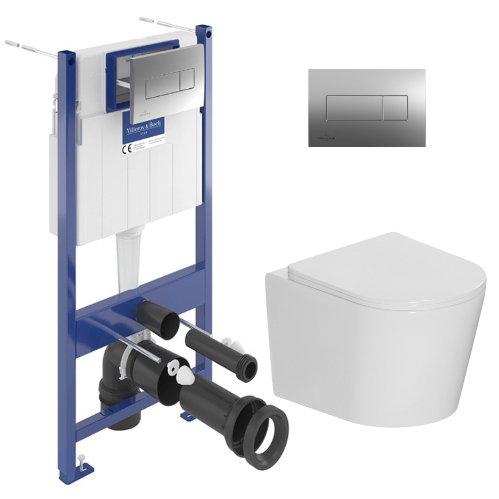 ViConnect Pro S pack WC bâti Villeroy & Boch + WC suspendu sans bride Ceramia + abattant SoftClose + plaque chrome (VCNCETOR2CH)