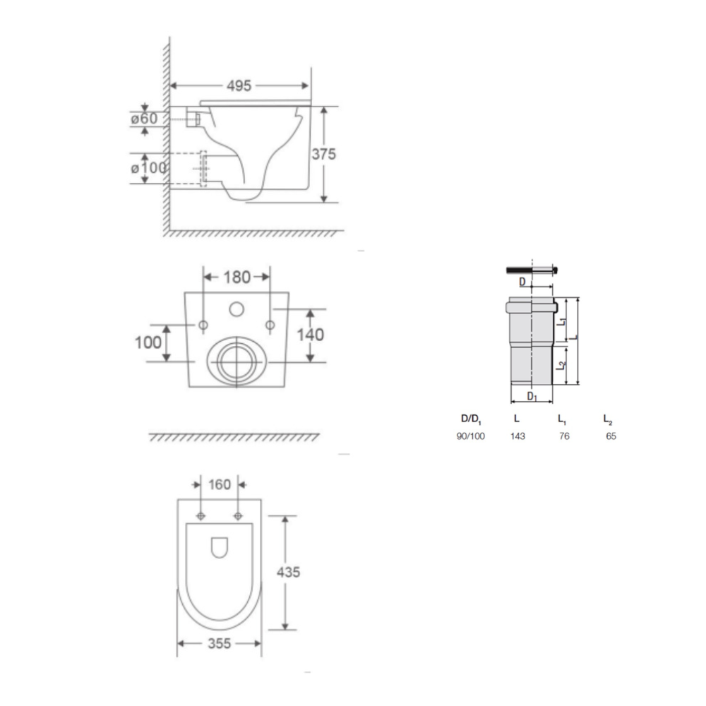 - Redi Manchon de raccordement Ø 90/100 MM pour Rapid SL ou Geberit (VS0564190)