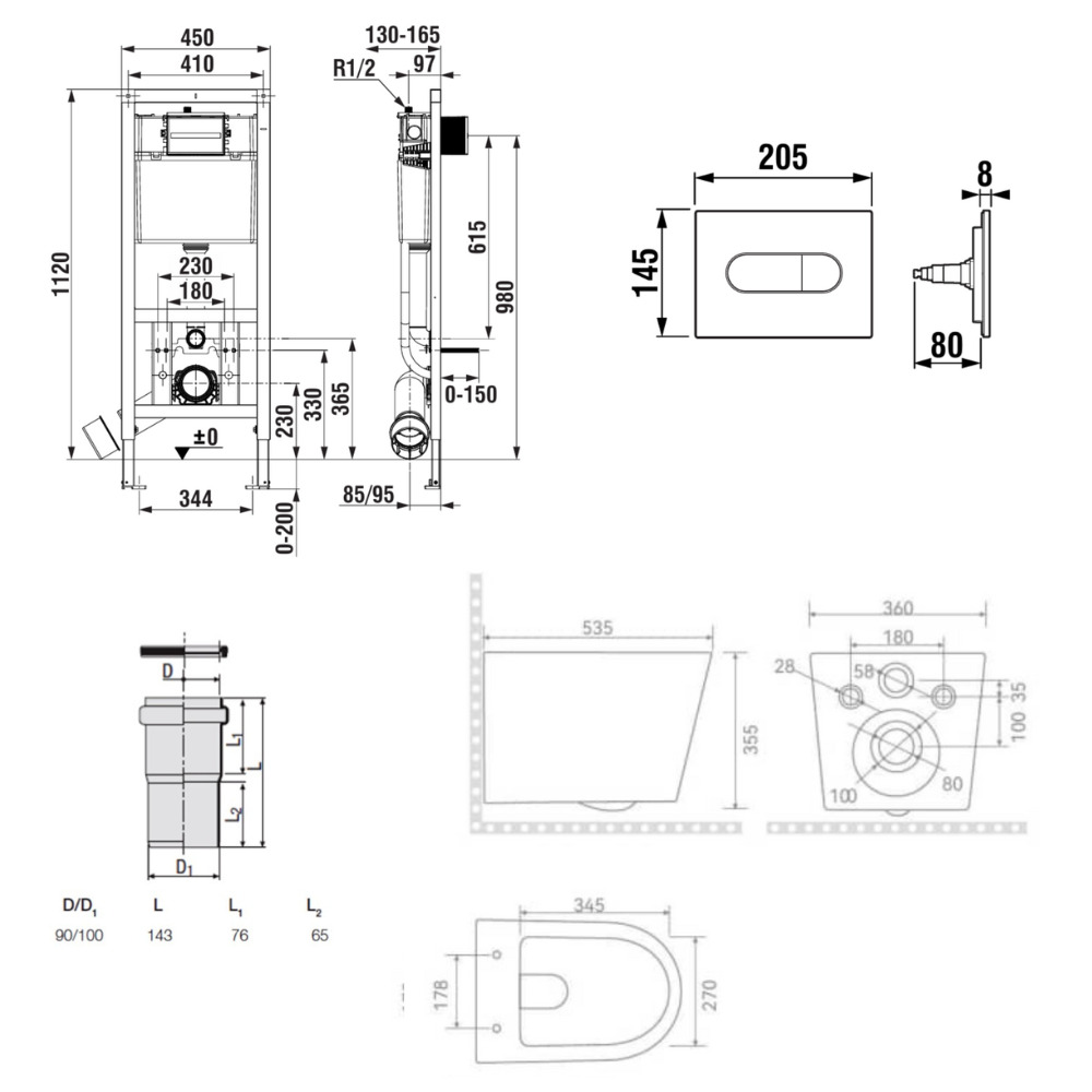 - Hauteur cuvette : 35,5 cm