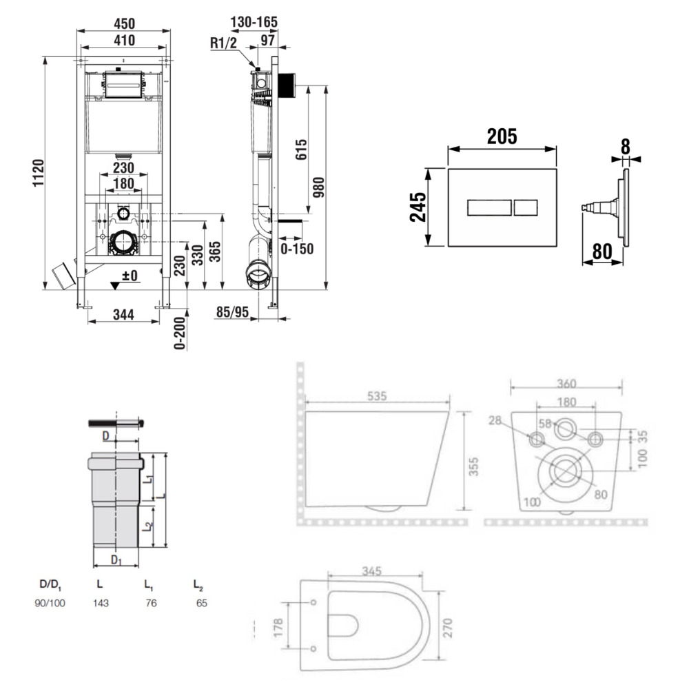 - Type de produit : ensemble WC suspendu sans bride + abattant SoftClose
