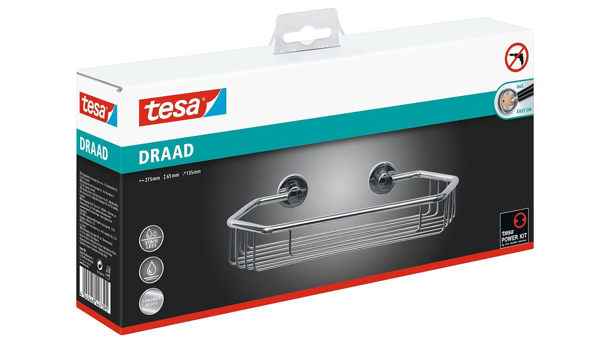 - Panier de douche avec technologie brevetée tesa® Power.Kit (solution de fixation complète)