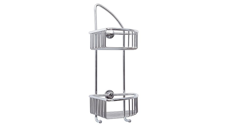 Caractéristiques de l'Etagère d'angle 2 paniers arrondie 42,5x18x20,5cm, Aluminium, Chrome, pose facile sans perçage, Tesa Draad (40223-00000-00) :