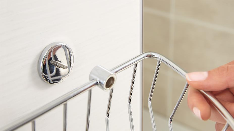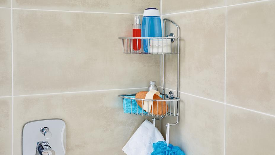 Un bel endroit pour conserver vos articles de toilette, voilà ce que va vous apporter l'étagère d'angle 2 paniers tesa® Draad. En aluminium chromé brillant, elle offre beaucoup d'espace sur deux niveaux. Vous pouvez facilement accrocher un gant de toilette ou une éponge de douche sur les deux crochets situés sous le panier inférieur. L'étagère d'angle se monte avec de la colle ; son temps de séchage est de 12 heures. Aucun perçage n'est nécessaire. Le panier peut être retiré sans laisser de traces.
