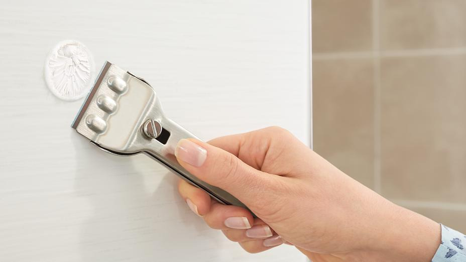 - Non applicable sur le papier peint, le plâtre et toute autre surface à revêtement non adhésif