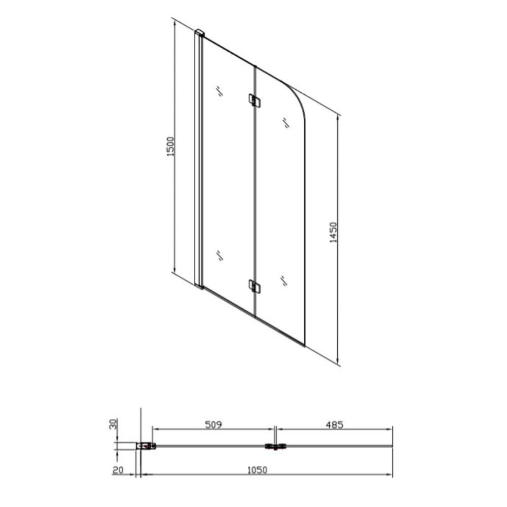 Caractéristiques du Pare-baignoire pliable, 2 parties, en verre, 150x105cm, Chrome, Swiss Aqua Technologies (SATVZSK105) :