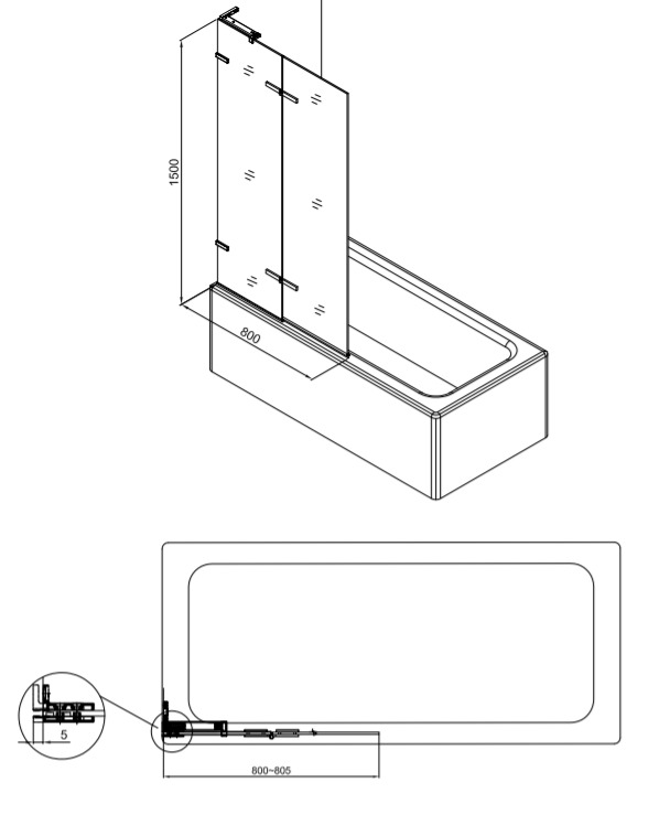 Caractéristiques du Pare-baignoire pliable, 2 parties, en verre, 150x80cm, Noir, Swiss Aqua Technologies (SIKOTGVZ150) :
