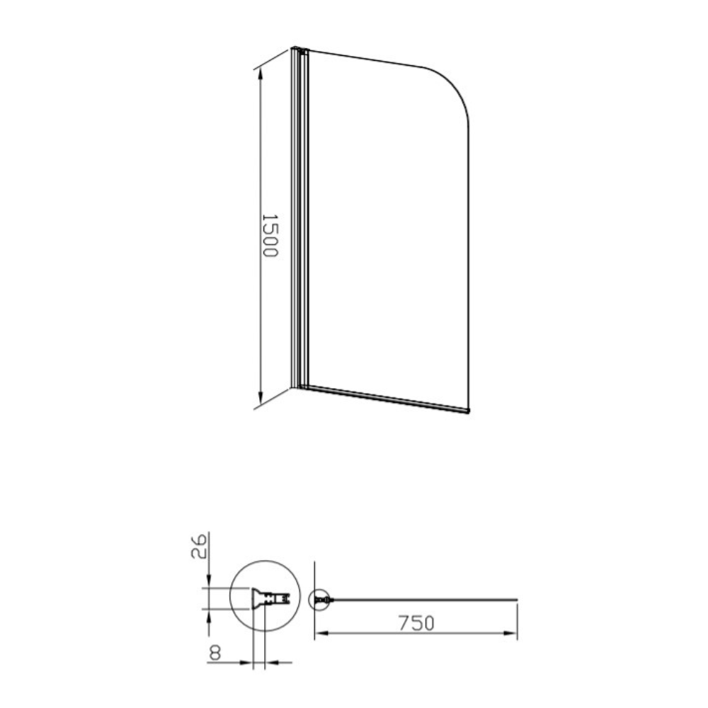 Caractéristique du Pare-baignoire avec un panneau pivotant en verre, 150x75cm, Chrome, Swiss Aqua Technologies (SATVZUNIKCRT75) :