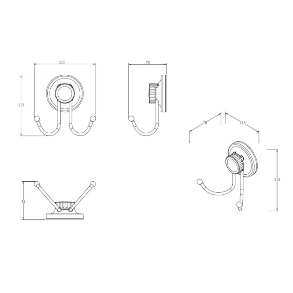 Crochet de salle de bain double doté d'un système de ventouse sans vis, chrome (ECO22)