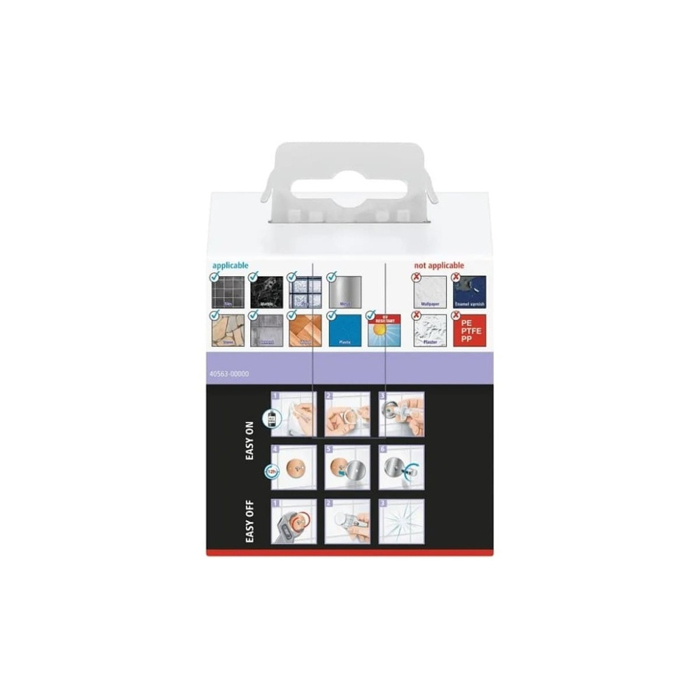 - Adhère au carrelage, au verre, à la pierre, au métal et à d'autres surfaces (à l'exception du papier peint, de certains plastiques et du plâtre)