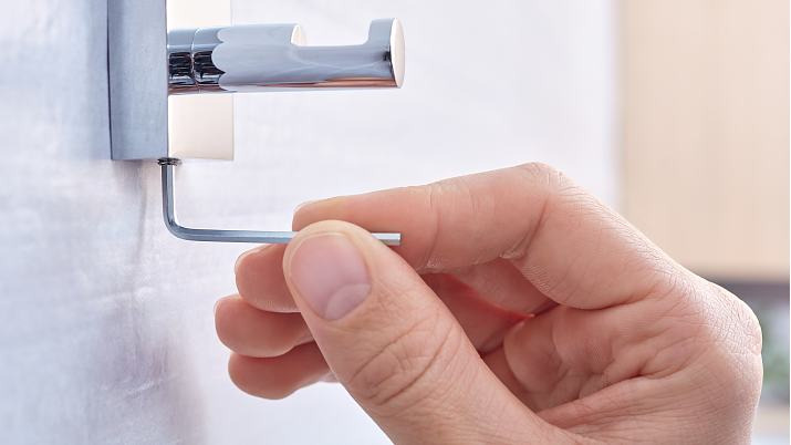 Avec le crochet serviettes tesa® Ekkro, vous pourrez suspendre des serviettes mais aussi des peignoirs. Avec son support angulaire et son crochet cylindrique, cet accessoire à la finition chromée brillante est un objet d'une grande élégance. Grâce à la technologie tesa® Power.Kit, le crochet serviettes s'installe facilement où vous le souhaitez sans endommager la surface. Ni perceuse ni outil, il suffit de laisser durcir la colle pendant 12 heures.