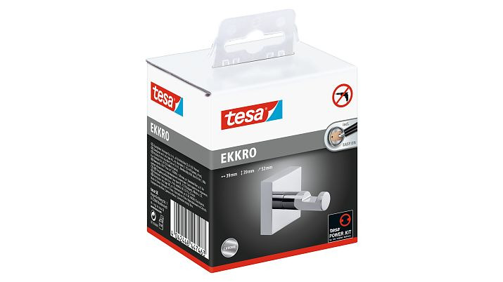 Tesa Ekkro Patère murale en métal chromé inoxydable, pose facile sans perçage (40235-00000-00)