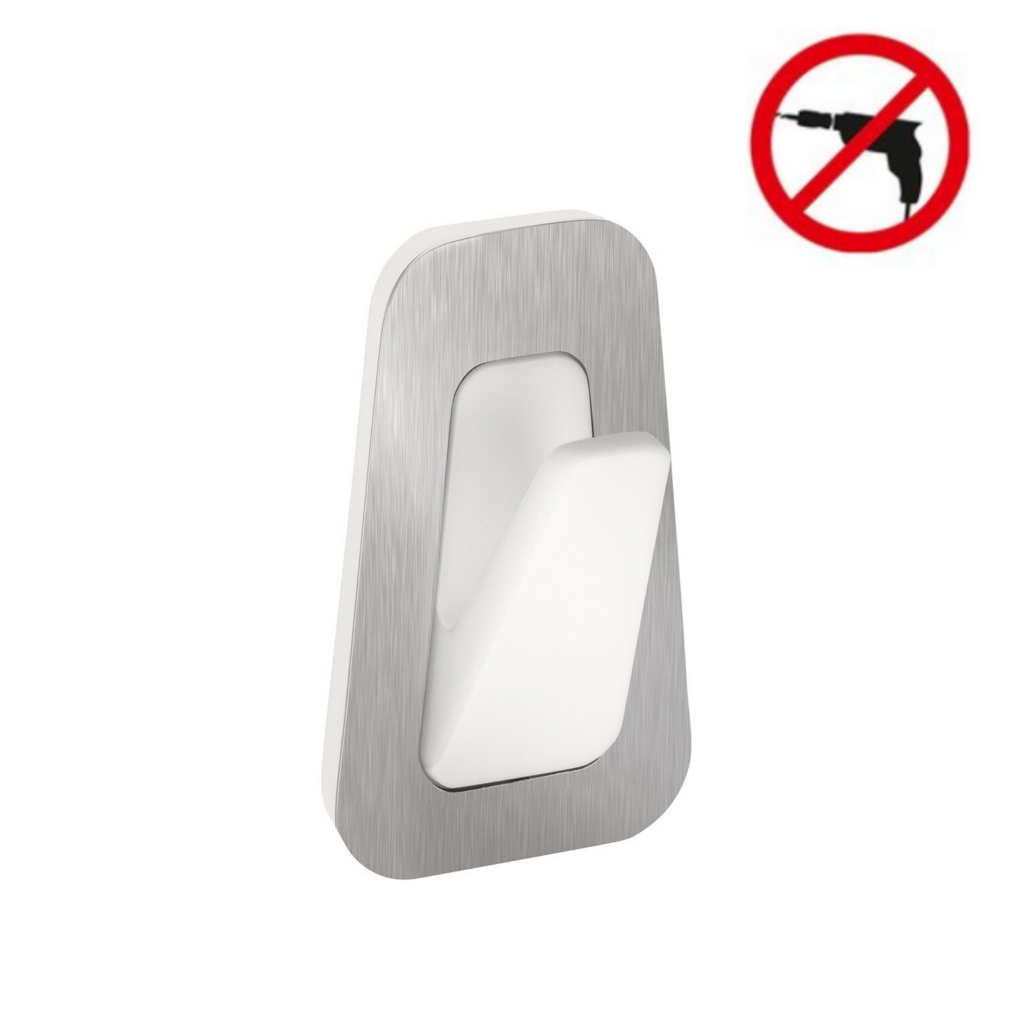 Tesa PowerStrips Grand crochet blanc / chrome, pose facile sans perçage (59784-00003-00)