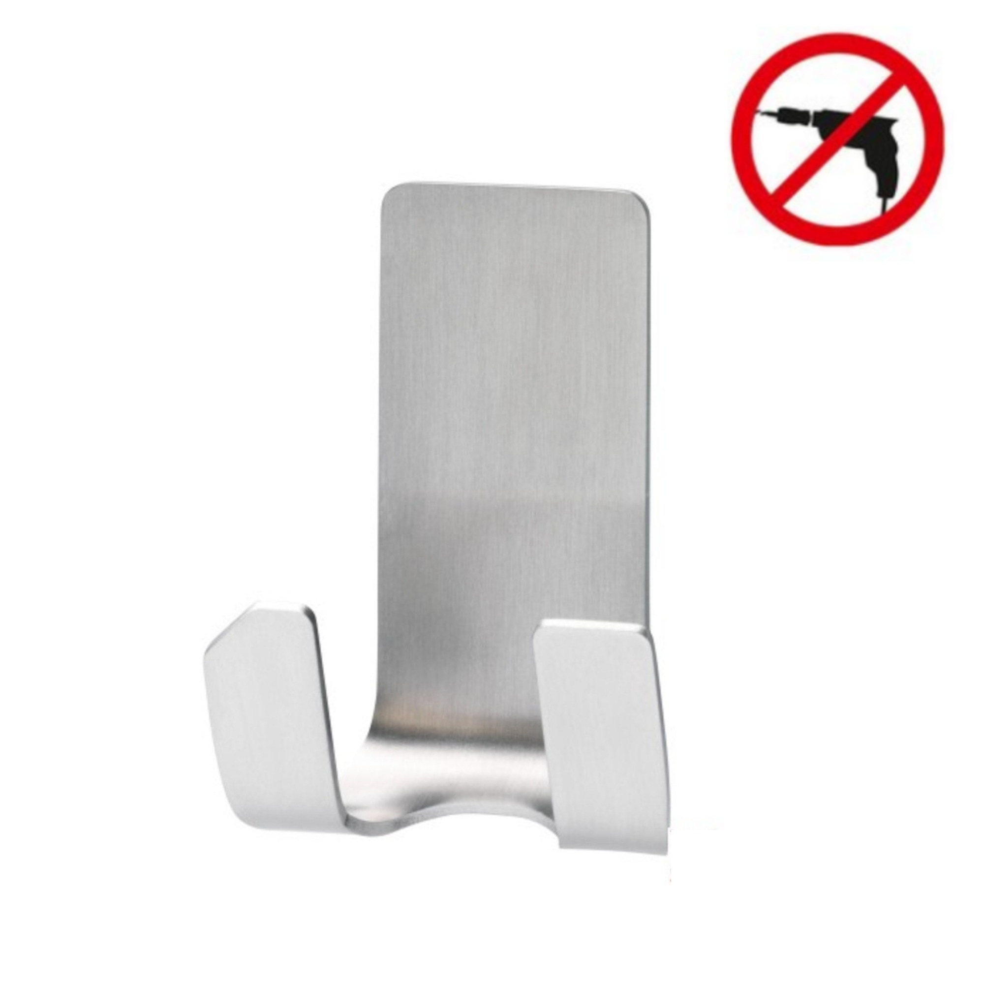 Tesa PowerStrips Crochet double en acier inoxydable, pose facile sans perçage (59709-00-01)