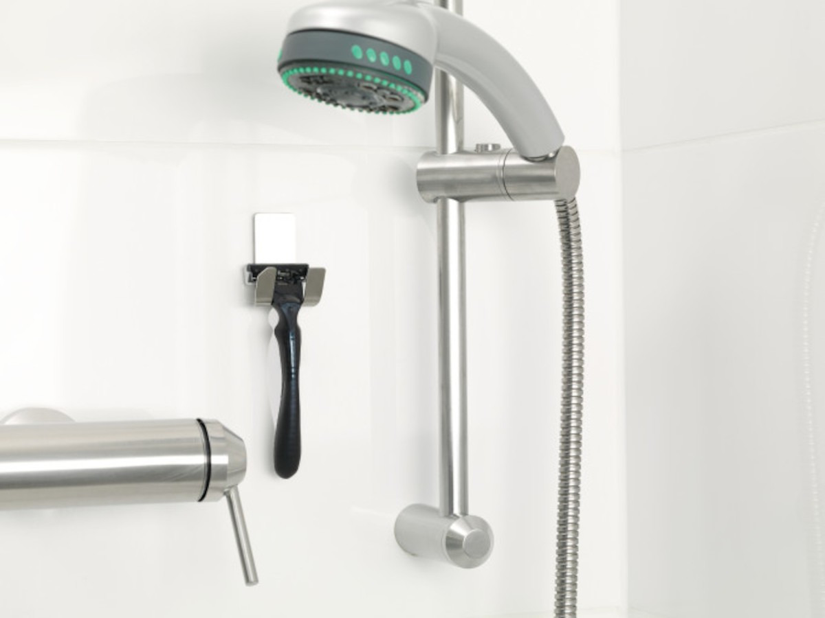 Le porte-rasoir étanche de haute qualité en acier inoxydable peut contenir presque tous les types de lames de rasage pour femmes et hommes. Il convient aux environnements humides, comme les douches et les baignoires. Grâce à la technologie brevetée Tesa Powerstrips il assure un maintien fiable jusqu'à 2 kg. Pour le fixer, il ne faut ni percer, ni abîmer le mur. Il vous suffit de coller simplement le crochet sur la surface. De plus, vous pouvez l'enlever à tout moment sans laisser de trace. Adoptez-le donc et placez-le très facilement.