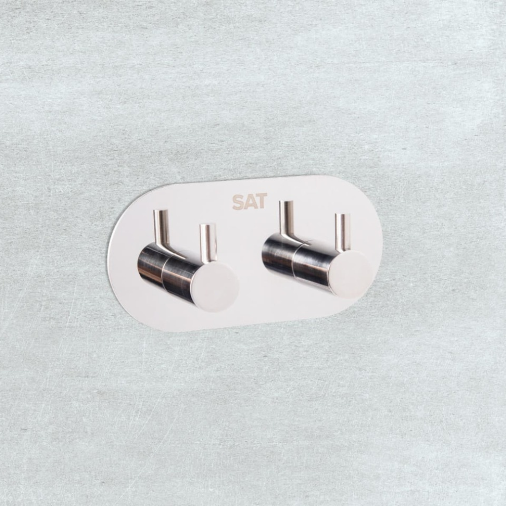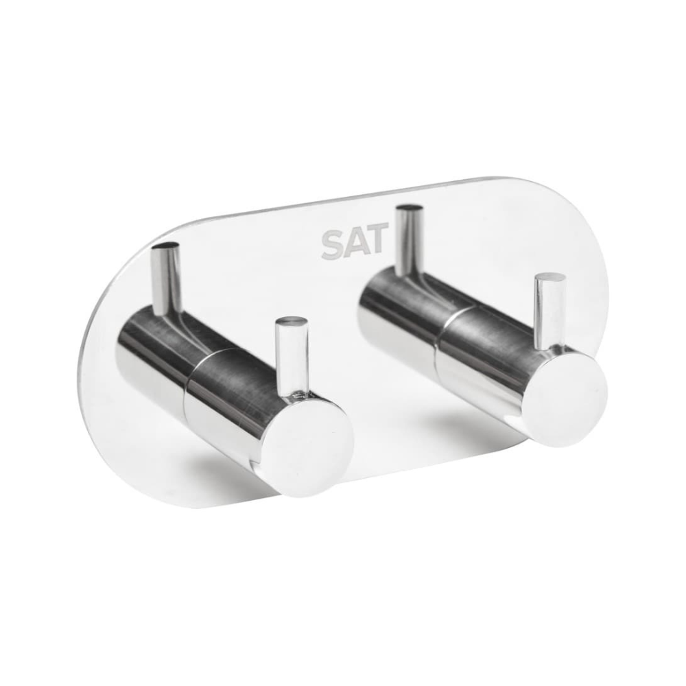 Swiss Aqua Technologies Patère murale adhésive double crochets en acier inoxydable, chrome brillant (HACEKNALEP2K)