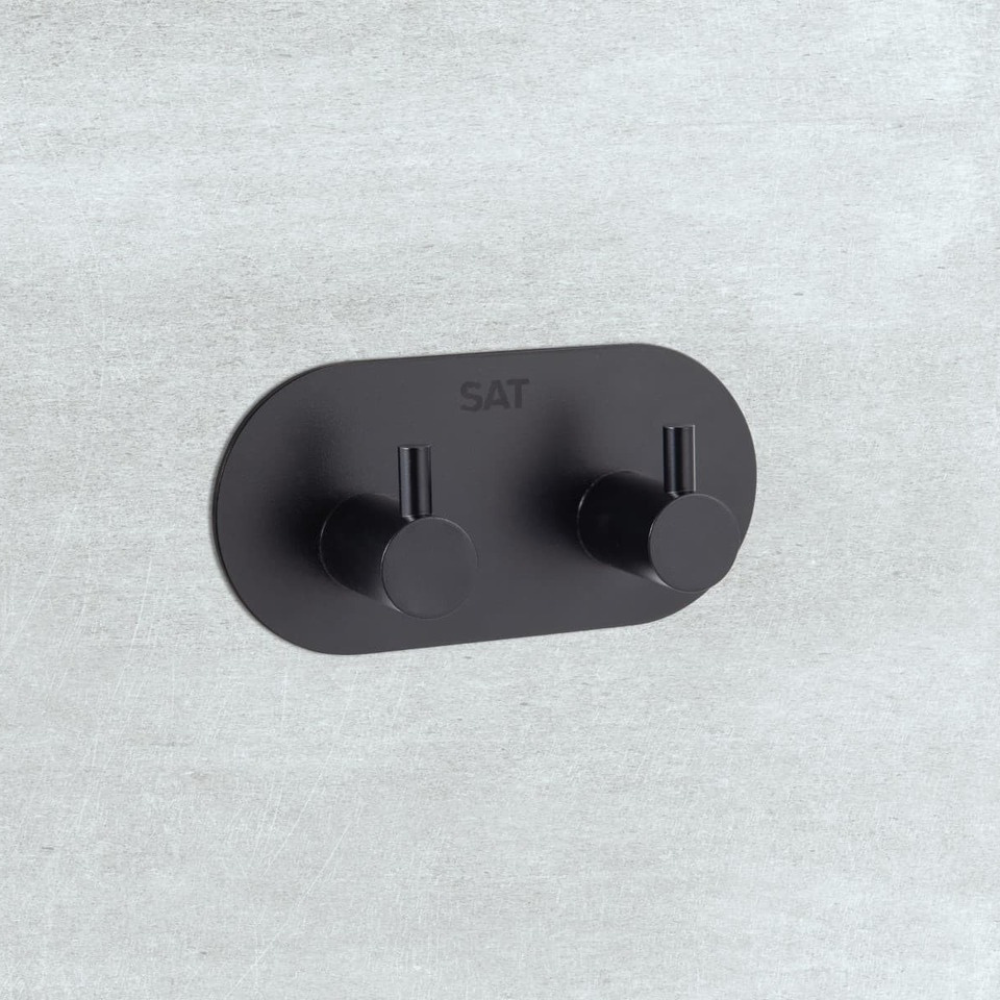 Swiss Aqua Technologies Patère murale adhésive double crochets en acier inoxydable, noir mat (HACEKNALEP2KMC)