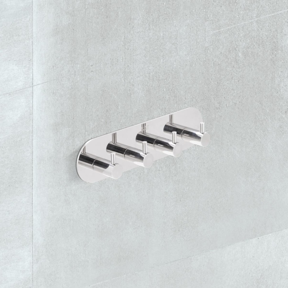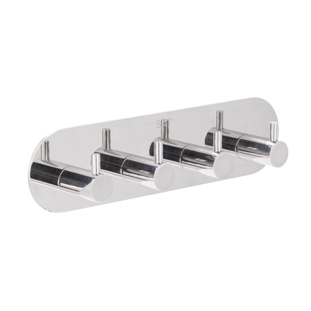 Swiss Aqua Technologies Patère murale adhésive quadruple crochets en acier inoxydable, chrome brillant (HACEKNALEP4K)