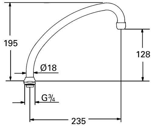 Grohe Bec tubulaire pour robinetterie verticale de cuisine, 1/2", Chromé (13077000)