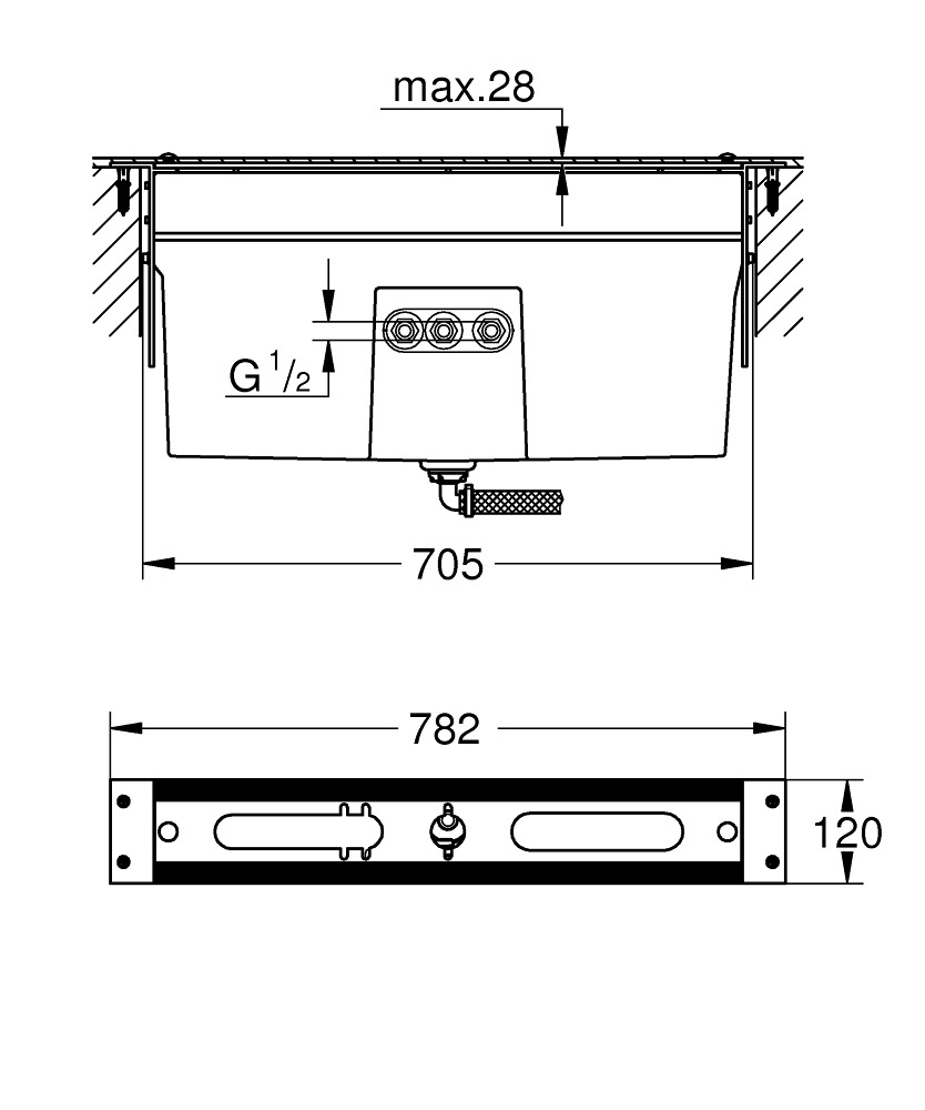 Grohe Châssis pour combiné Bain/Douche 4 et 5 trous sur plage (29037001)
