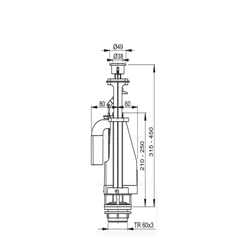 Caractéristiques de la vanne de vidange à double bouton Alcaplast (A08A):