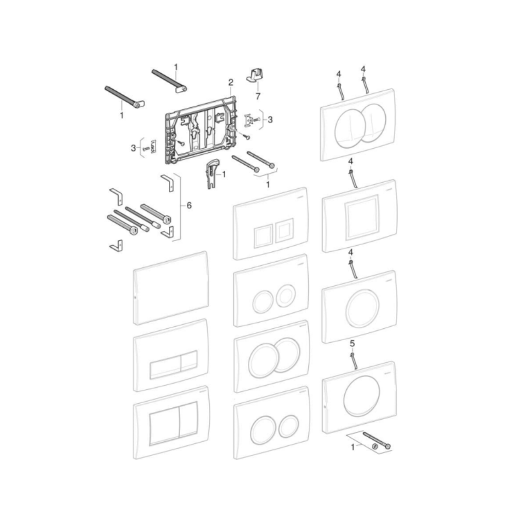 - Ce kit est utilisé pour fixer le cadre de déclenchement des plaques de commande Geberit Delta sur les réservoirs encastrés