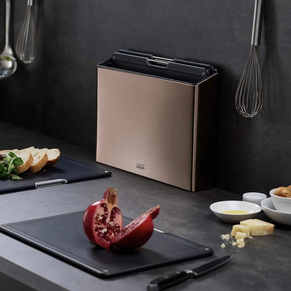 Joseph Joseph Folio™ ensemble de 4 planches à découper avec étui en acier, planches : 24 x 34 cm, or rose (60172)