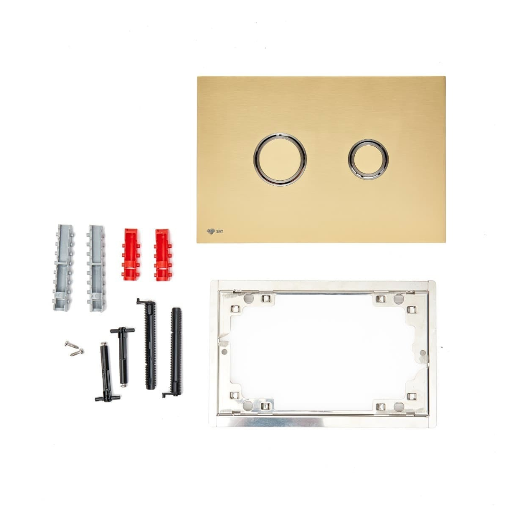 Caractéristiques de la plaque de commande double touche en acier inoxydable, traitement PVD, Swiss Aqua Technologies, or mat (SATATBG) :