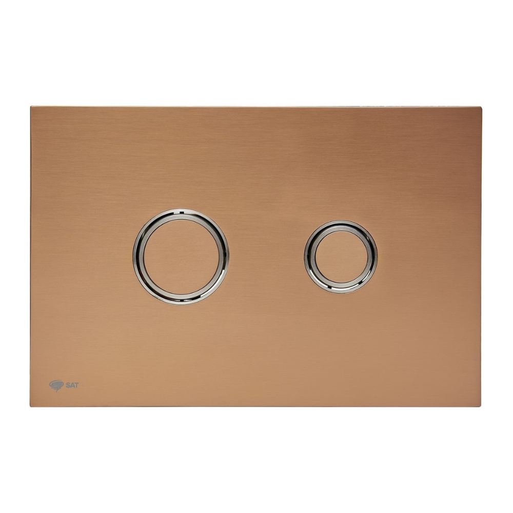 Caractéristiques de la plaque de commande double touche en acier inoxydable, traitement PVD, Swiss Aqua Technologies, or rose mat (SATATBRG) :