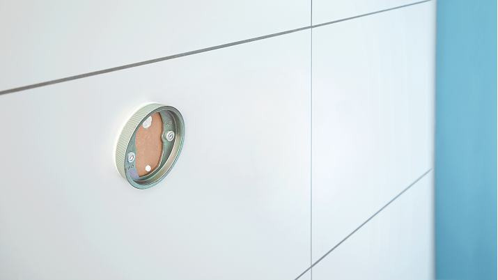 - Look métal mat, revêtement anti-traces de doigts, forme arrondie, plaque murale circulaire