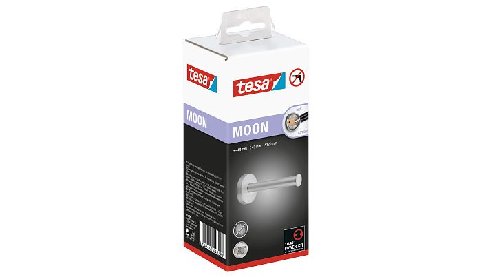 C'est toujours utile d'avoir le stockeur de papier toilette rond suppl. tesa® Moon dans votre salle de bain, en cas d'urgence. Avec son look en acier inoxydable anti-traces de doigts, le support rehausse tous les styles. En plus, il peut être fixé partout sans se soucier des dommages causés aux murs ou carrelages. Le support utilise une solution de fixation adhésive. Aucun perçage n'est requis et les surfaces restent intactes. Après 12 heures de séchage, la colle crée un lien ultra solide. Toutefois, le support peut être rapidement retiré, sans laisser de traces, et repositionné à un nouvel adaptateur BK20.